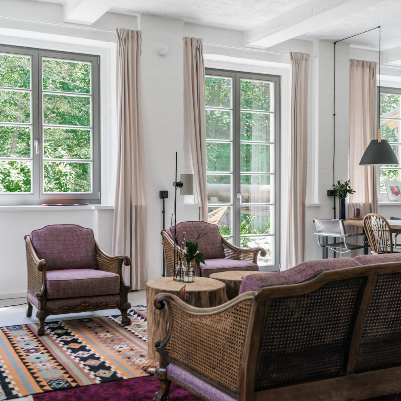 Die Schleiferei Zwei ist ein Ensemble aus fünf großzügigen Ferien-Apartments und einem Gemeinschaftsbereich, dem Loft. Während des Workshops teilen sich jeweils zwei Personen ein Apartment und damit auch ein Bad, jede hat ihr eigenes Einzelzimmer. Zwei weitere Einzelzimmer stehen im Loft zur Verfügung. Für Teilnehmer:innen, die sich gerne ein Schlafzimmer teilen möchte, stehen zwei weitere Apartments zur Verfügung.Du startest in den Tag mit einem reichhaltigen Frühstücksbuffet mit frischen, lokalen Produkten! Damit Körper und Geist versorgt sind, gibt es tagsüber Snacks - und abends ein vegetarisches 3-Gänge-Menü.